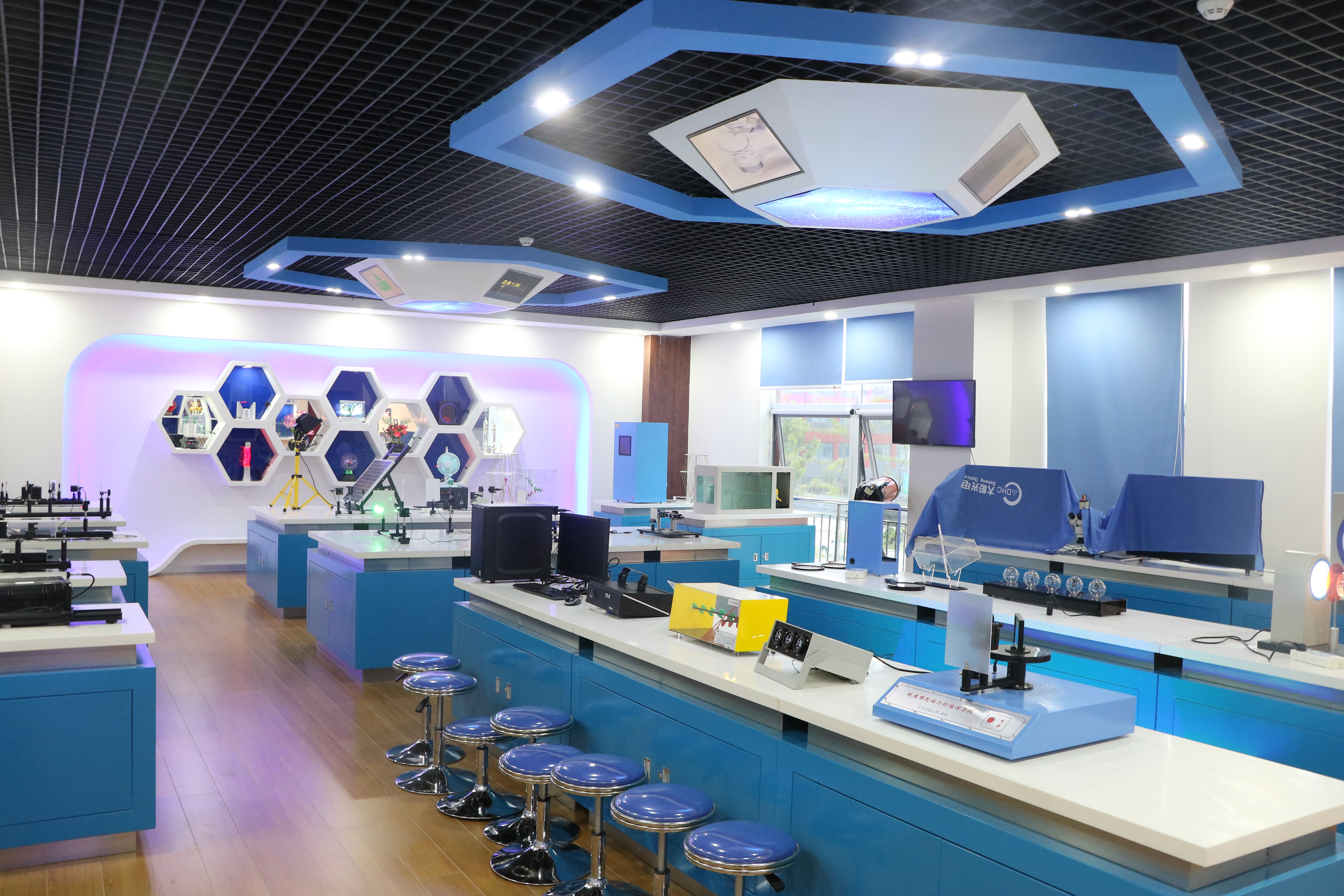 光学演示实验室内有地面窥视无穷、同自己握手、光栅视镜、手持大型偏振片、旋光色散、偏振光干涉演示仪、天文望远镜等光学相关的仪器设备,可以帮助学生更好的理解光学成像、干涉、衍射、偏振等知识点。
