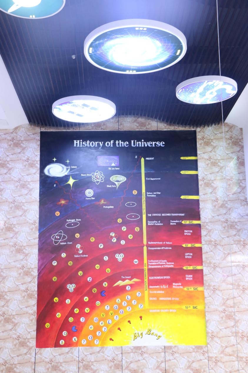 科普大厅通过大型傅科摆、“宇宙大爆炸”巨幅油画、微晶阵列立体图等科普展品,营造出一个轻松愉悦的参观环境。
