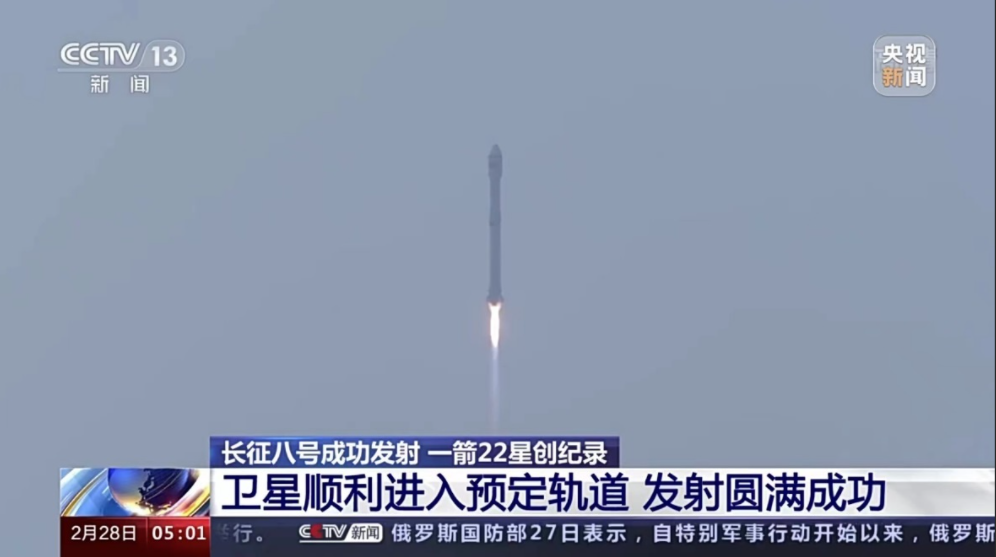 【2】肖潇. 一箭二十二星 长征八号火箭破纪录[N]. 央视新闻, 2022-02-28.