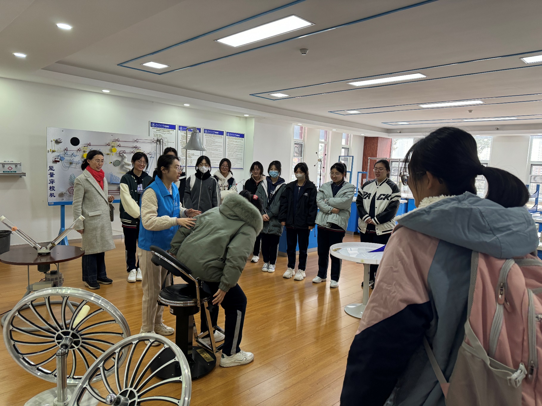 威海市第二中学的教师和同学们依次参观了力学、电磁学、振动与波、光学、立体与综合和热学与综合演示实验室,体验了角动量守恒转台、茹科夫斯基凳、静电摆球、涡流效应演示仪、电磁驱动演示仪、大型弹簧纵横波演示仪、衍射光栅、3D电影和超导磁悬浮列车等众多科普演示项目。