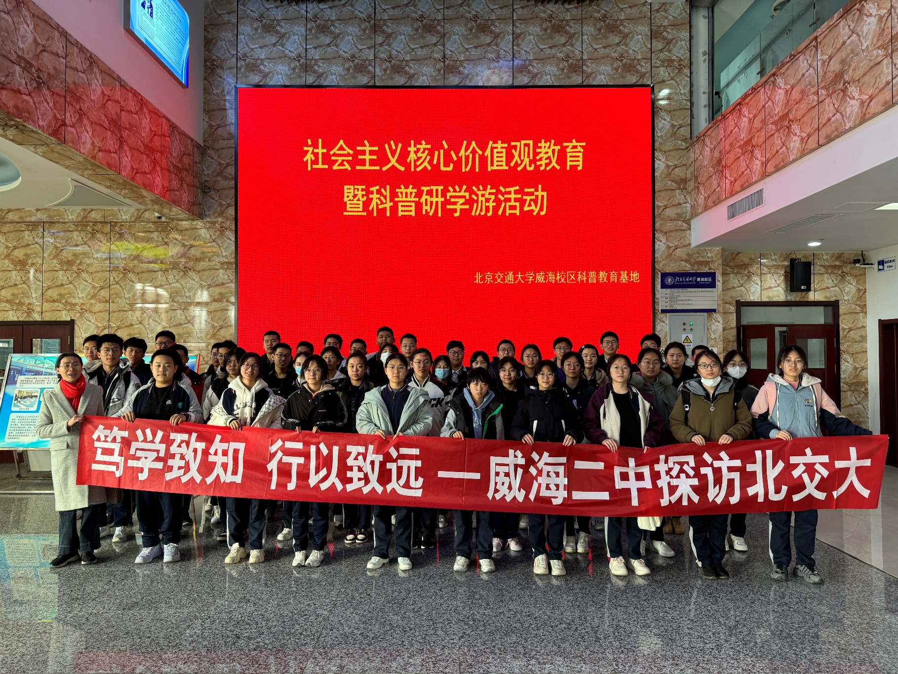 On March 22, Huang Mingjiang, the head teacher of the experimental class of Weihai No. 2 High School, and three teachers led 45 students to visit the Popular Science Base of BJTU Weihai Campus.