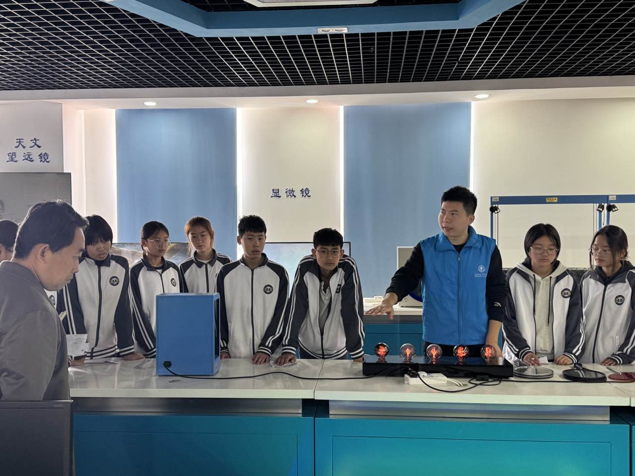 参观结束后,实验教师为同学们呈现了精彩的科普实验秀,让大家亲身体验了角动量守恒演示仪、静电章鱼、静电高压和温柔的电击等实验项目。通过这些直观的演示,同学们不仅深入理解了相关现象的科学原理,更激发了对探索更多科学奥秘的浓厚兴趣。