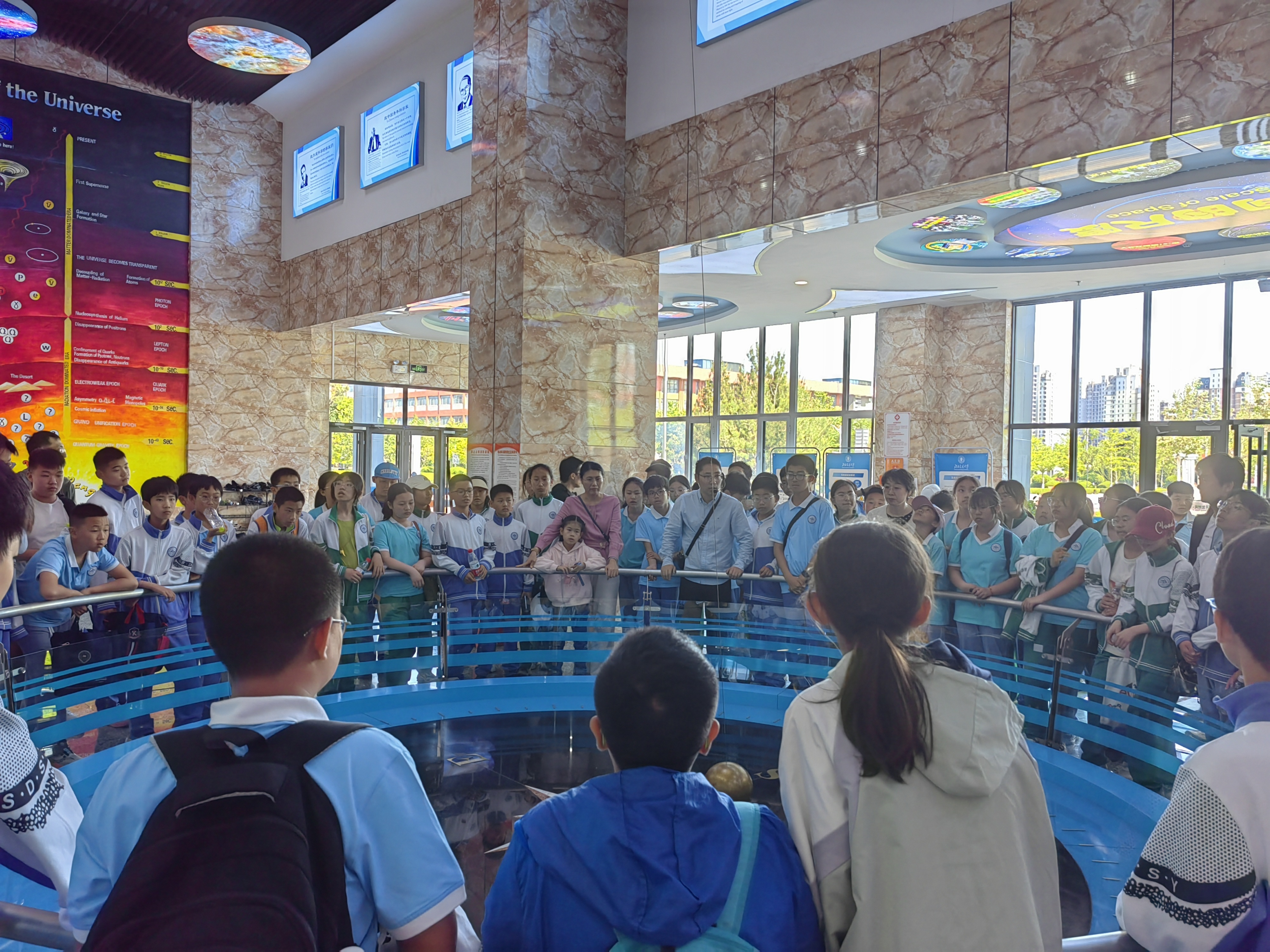 科普教育基地的物理教师们亲切接待了来自威海的200名中小学生。同学们依次参观了力学、振动与波、光学、立体与综合和热学与综合演示实验室,体验了角动量守恒转台、直升机演示仪、大型弹簧纵横波演示仪、共振摆、形状记忆合金和蒸汽机演示仪等众多科普演示项目。这次充满趣味性的沉浸式科学探索之旅,点燃了同学们对科学的求知欲,使他们感受到学习的乐趣和知识的魅力。