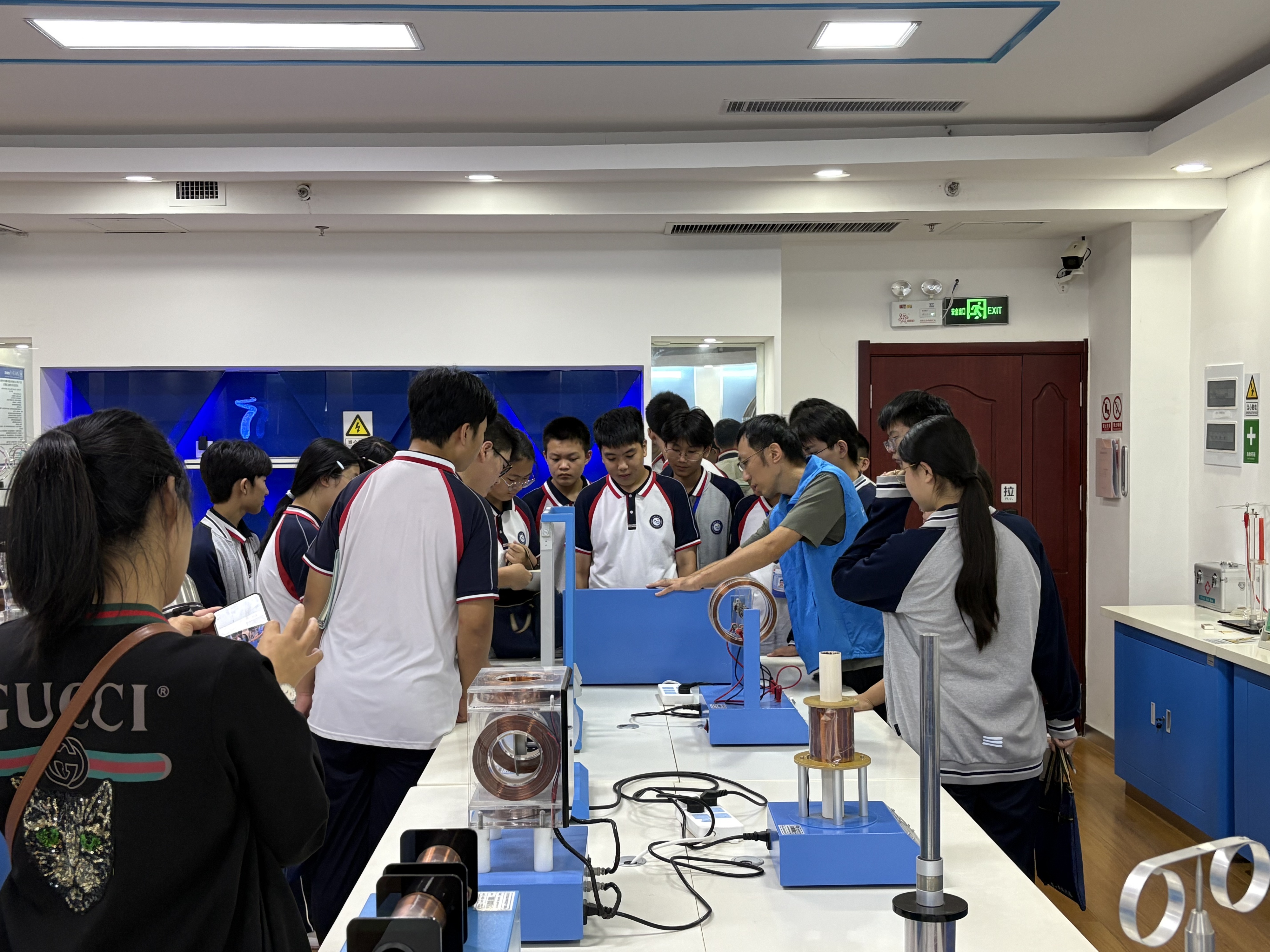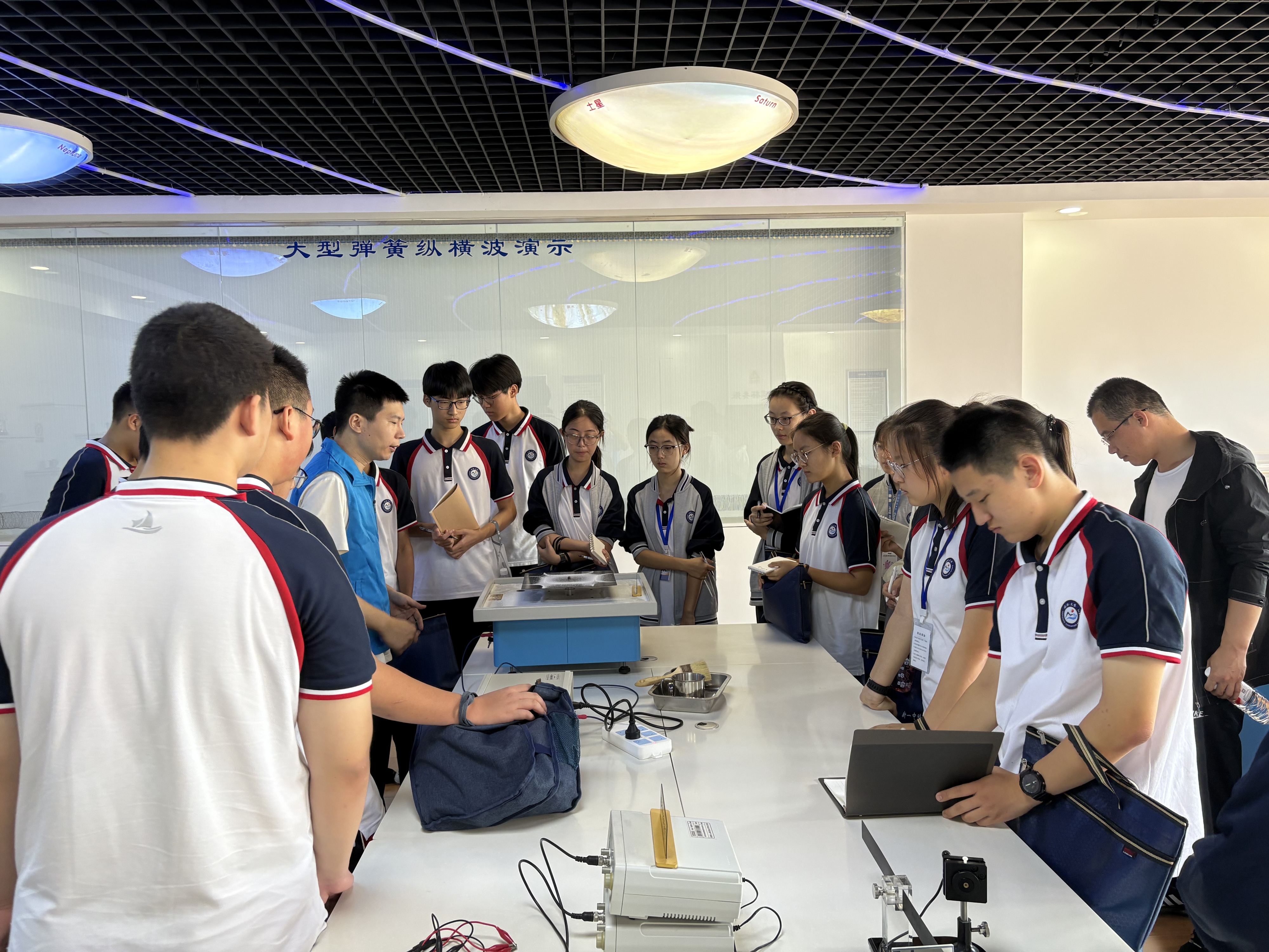 学生们依次参观了力学、电磁学、振动与波、光学、立体与综合和热学与综合演示实验室,体验了角动量守恒转台、飞机升力、电风吹烛、视觉暂留、内燃机演示仪等众多科普演示项目。