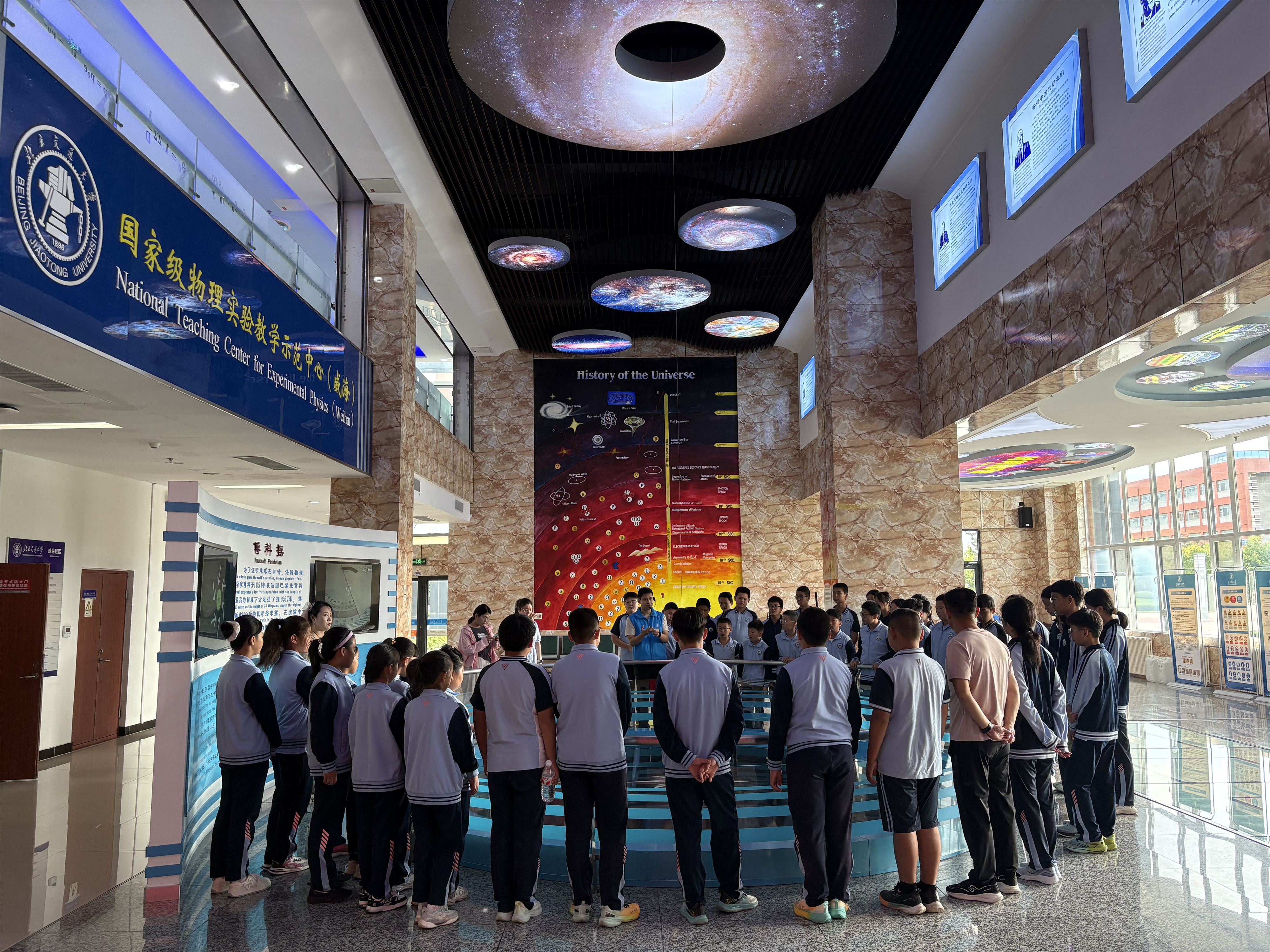 10月9日,来自威海乳山市南黄镇中心学校的5名教师与47名学生来到威海校区科普教育基地参观。科普教育基地的5名实验教师接待了参观人员。