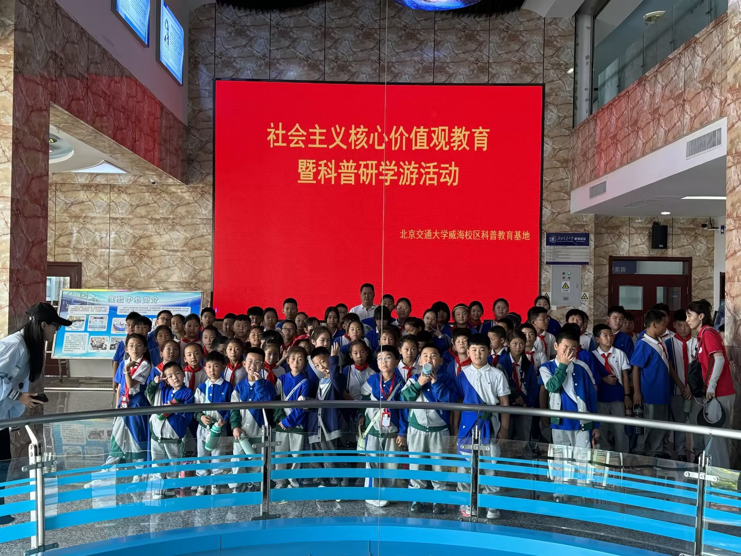 On October 11, Liao Yunlin, the director of moral education of Weihai Nanhai Tianli School, and 15 teachers led 76 students to visit the Popular Science Base of BJTU Weihai Campus.