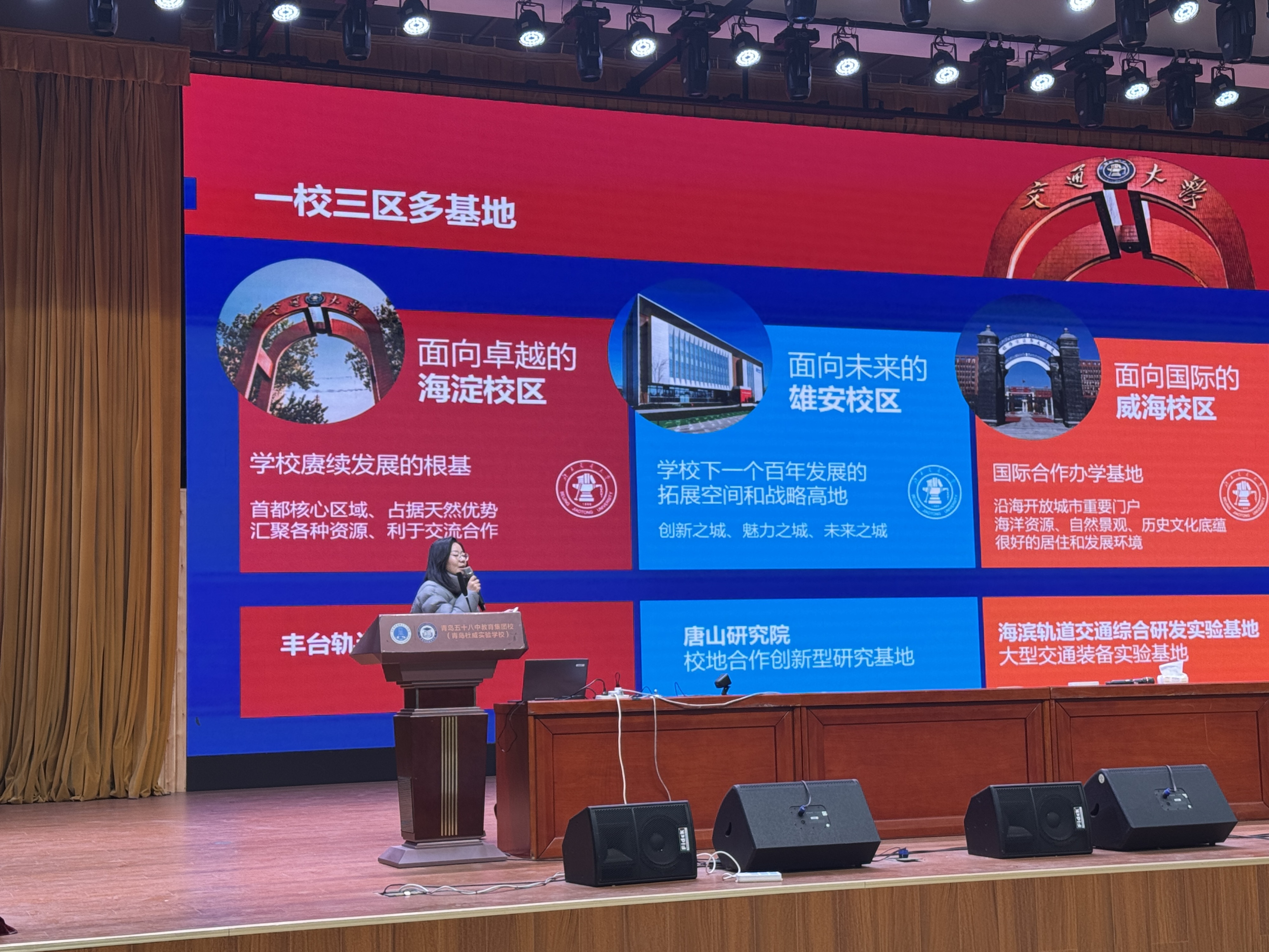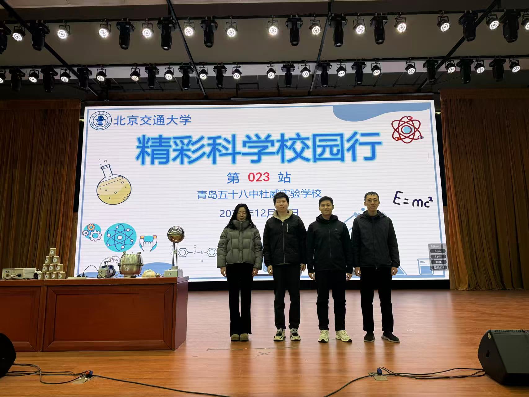 To deepen the collaborative partnership with senior high schools that provide quality student sources and stimulate middle school students' enthusiasm for exploring science, the Shandong Admissions Team of Beijing Jiaotong University, together with the Science Popularization Education Base of Weihai Campus, organized a series of "Science Show + Admissions Talk" events at two Qingdao-based high schools on Dec 3 and 4.
