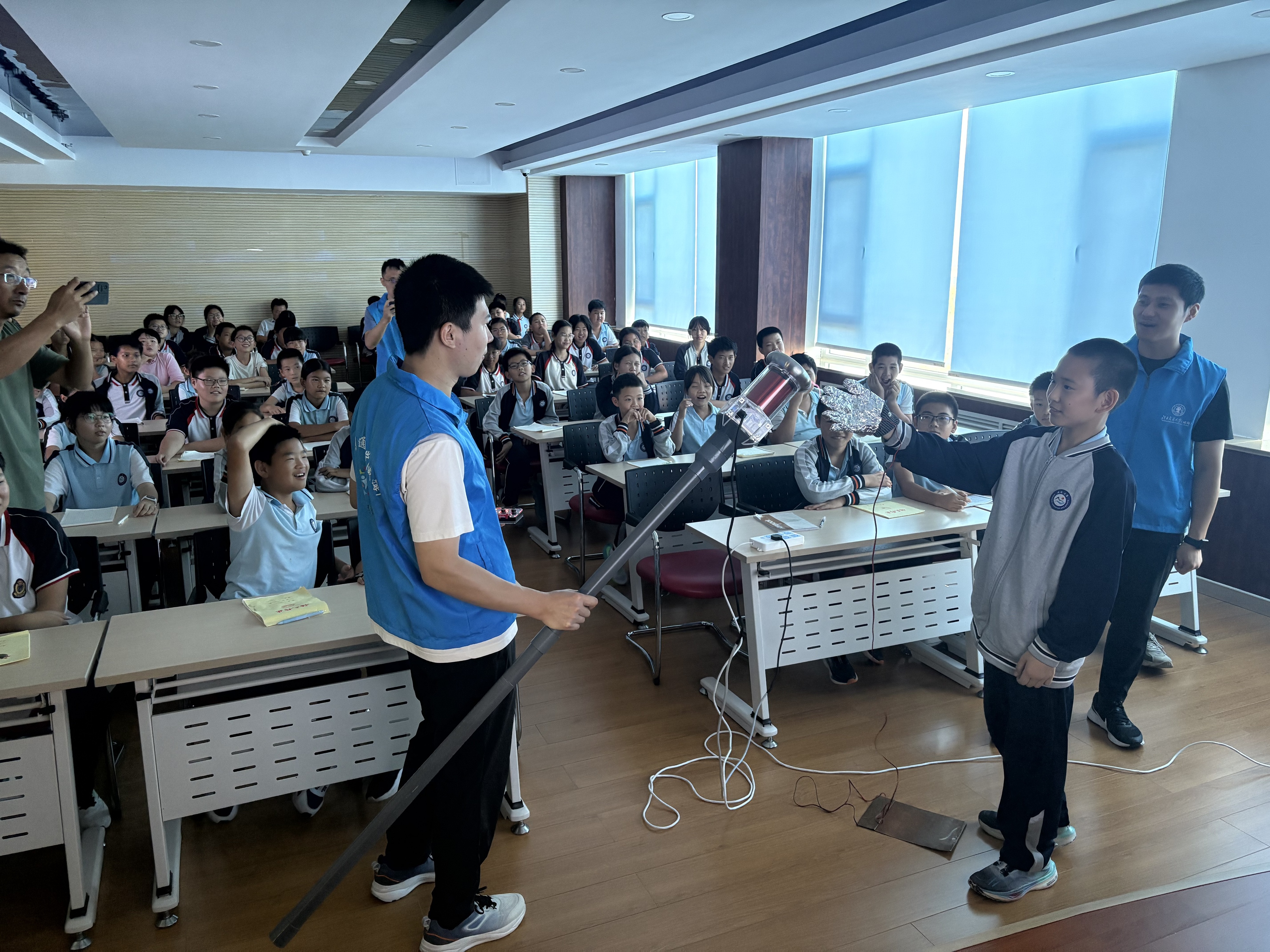 参观结束后,实验教师还为同学们表演了科普实验秀,让同学们体验了等离子炮、触摸闪电和伯努利塑料袋火箭等实验项目,将学生们对科学的热情带向高潮。