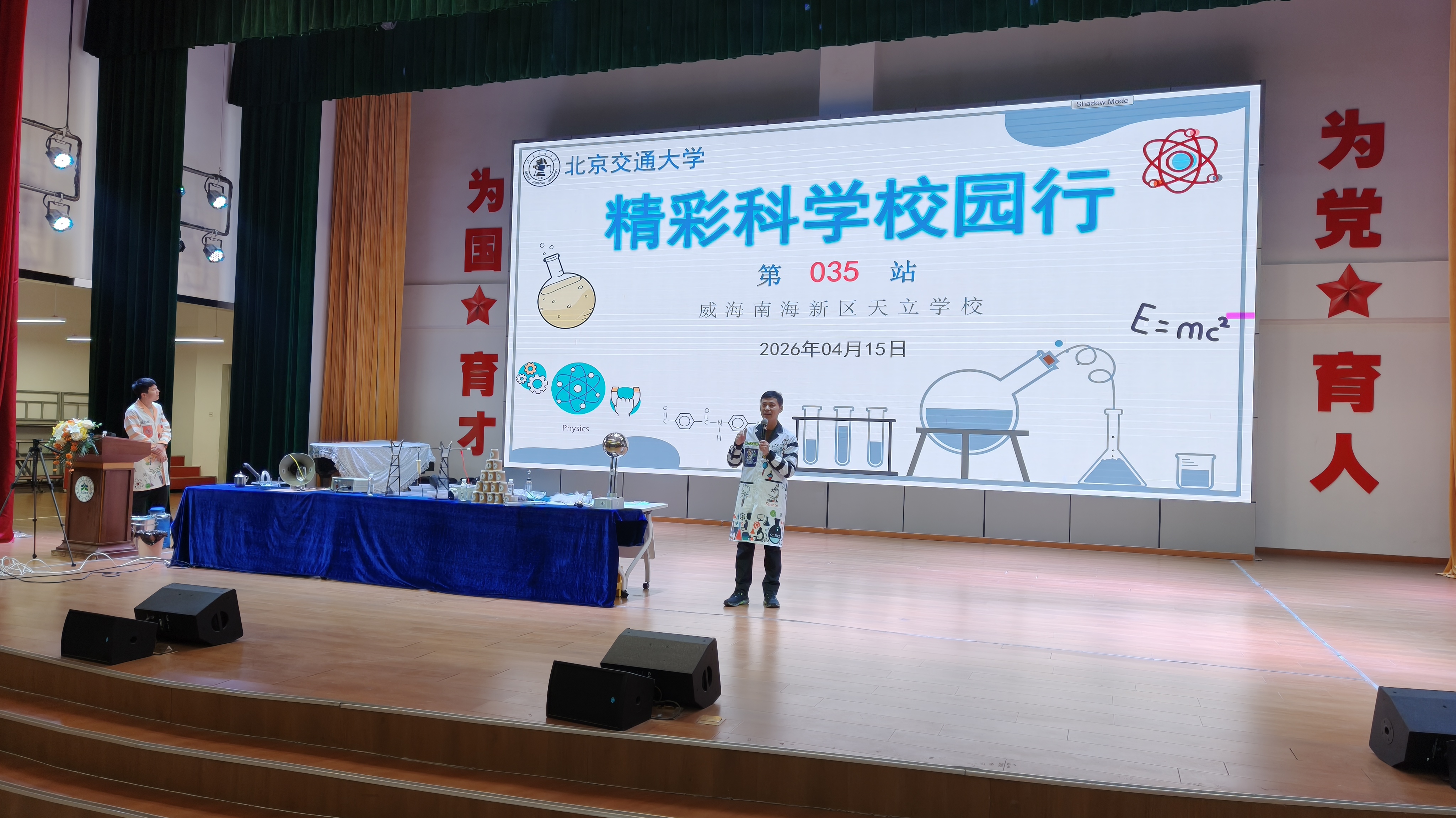 应威海南海天立学校和威海文登区科协的邀请,4月15日,北京交通大学威海校区科普教育基地的实验教师走进威海天立学校,参加2026年威海天立学校科技节活动,并开展科普实验秀。