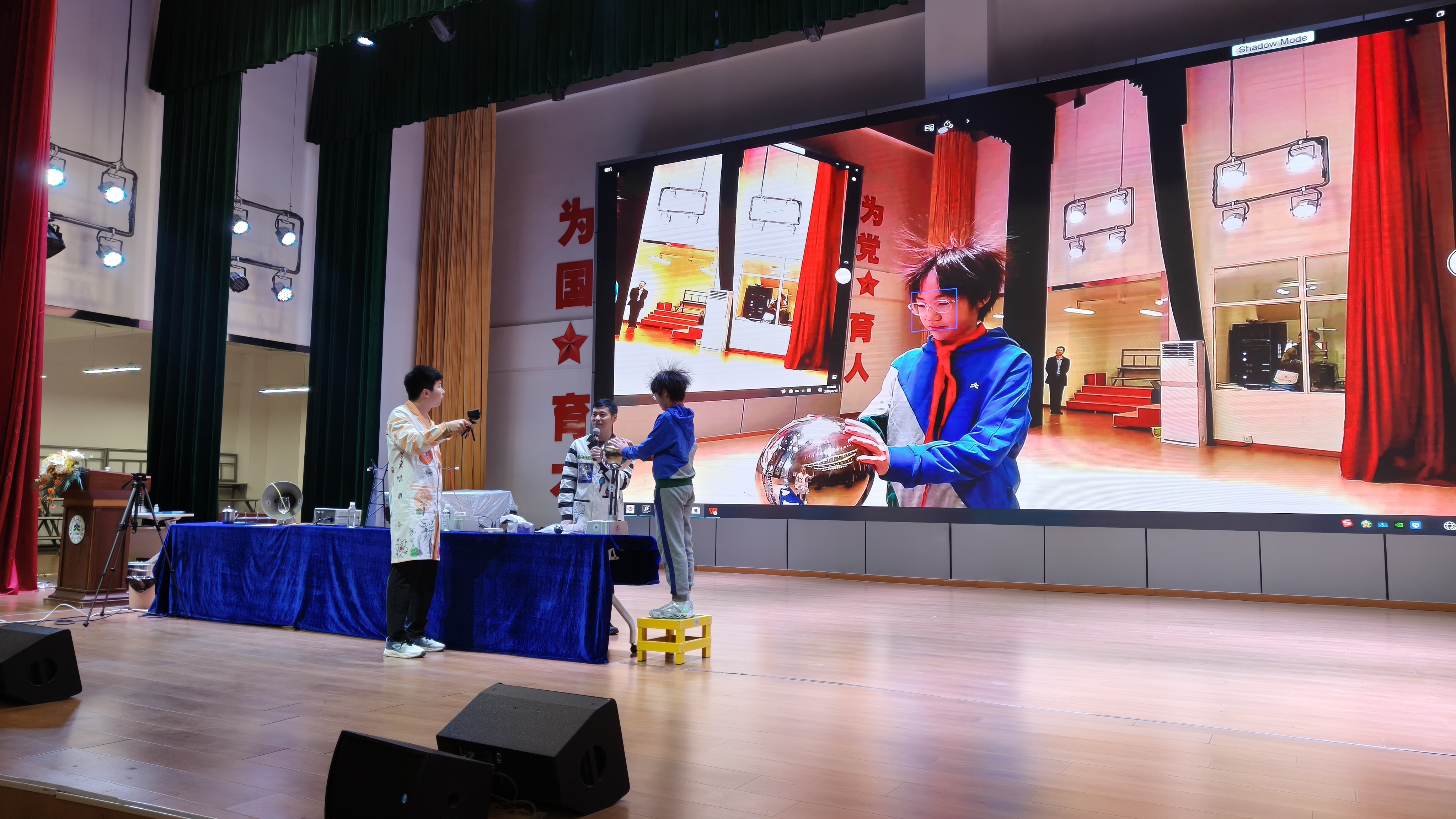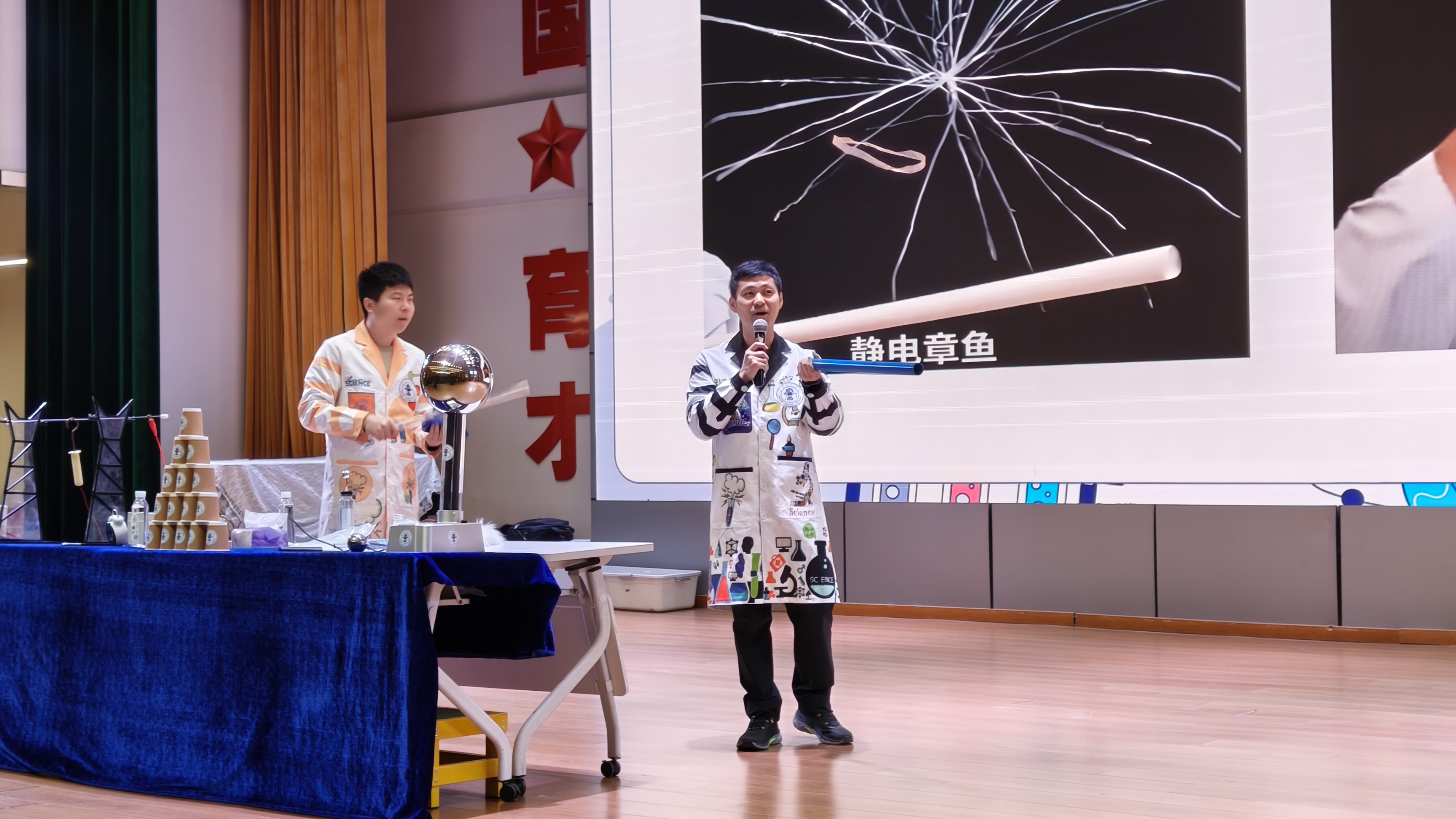 在互动阶段,团队邀请学生登台参与科普实验,亲身感受科学的神奇魅力。